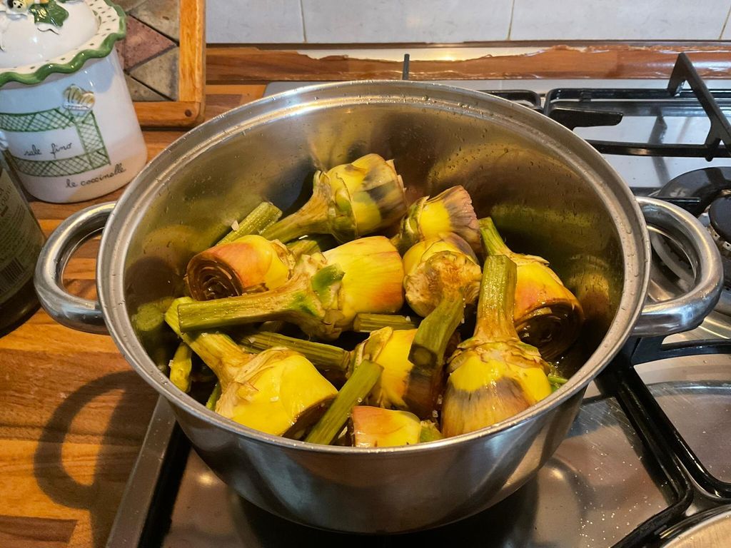 Preparazione dei carciofi al tegame