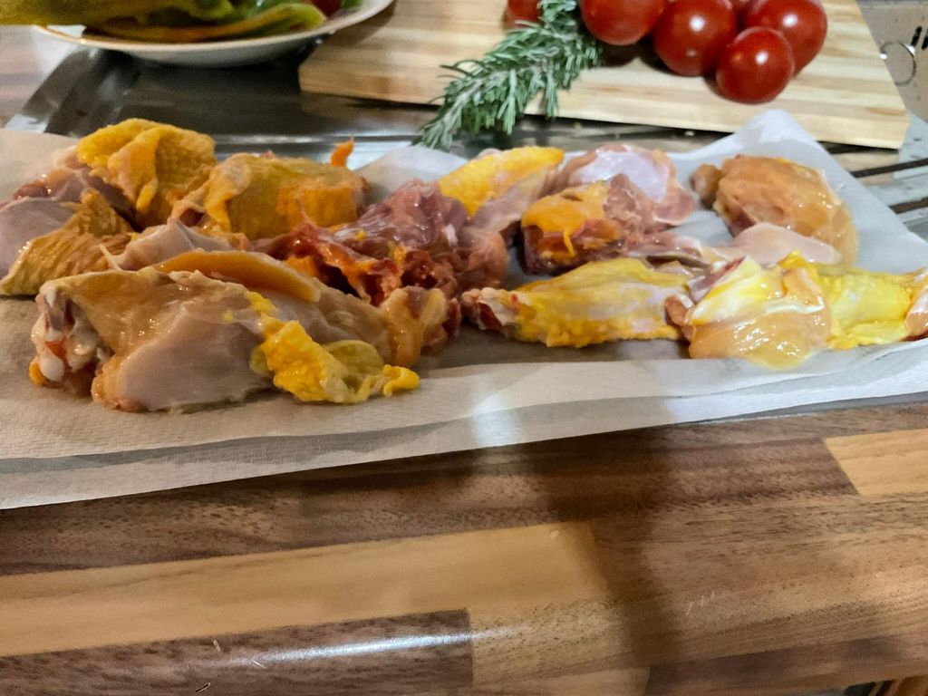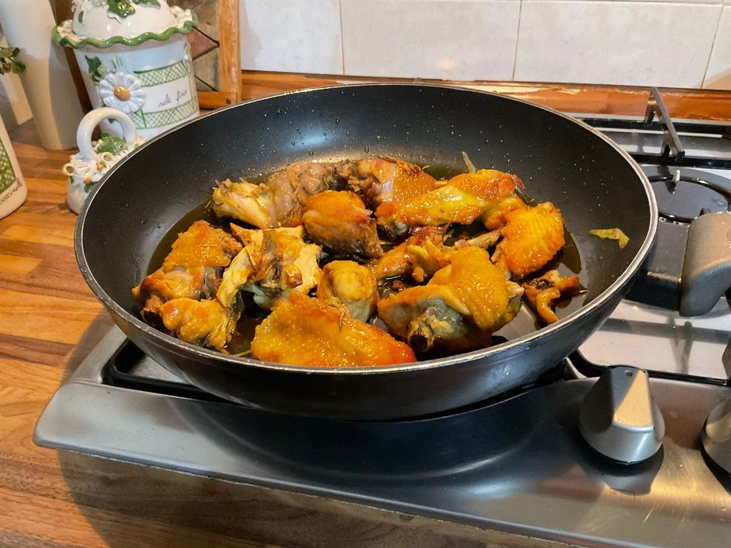 Adesso pensa alla cottura del pollo ruspante 🐔, se ne trovano di ottima qualità anche dal macellaio di fiducia, ricorda di fartelo tagliare a pezzi non molto grandi.